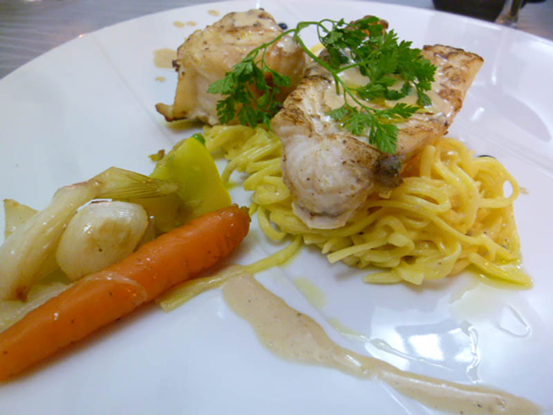 Poisson du jour sur son risotto au pistou et noisettes torréfiées