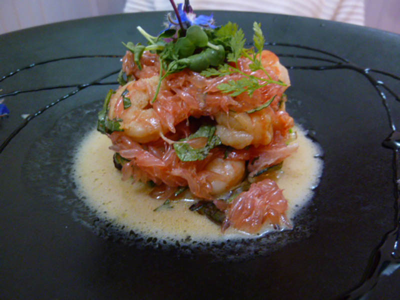 mi-cuit au torchon parfumé aux éffluves de baies roses de Timut et chutneys d’ananas aux oignons rougesou